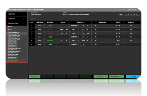 一、概述(主設(shè)置方案界面簡(jiǎn)介)工作方案腳本的編程性能的強(qiáng)弱是整個(gè)電池測(cè)試系統(tǒng)非常重要的指標(biāo)。1.LANBTS電池測(cè)試系統(tǒng)允許用戶對(duì)每個(gè)通道或者是多個(gè)通道同時(shí)或是分別設(shè)定多至65500個(gè)“工作步驟”的過程編程。2. 每個(gè)“工作步驟”由變量操作、工作模式、結(jié)束限制條件1、結(jié)束限制條件2、以及跳 轉(zhuǎn)(跳轉(zhuǎn)至)、記錄條件等五個(gè)部分組成。3. 變量操作幫助用戶操作(用戶)自定義的變量來實(shí)現(xiàn)多功能的測(cè)試方案編輯;4. 工作模式是...