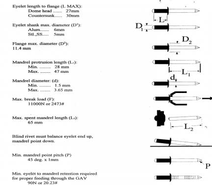 使用法蘭型釘頭直徑最大為11.4mm的抽芯鉚釘